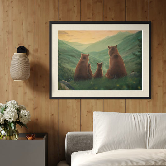 Bear family at sunset - Fine art print